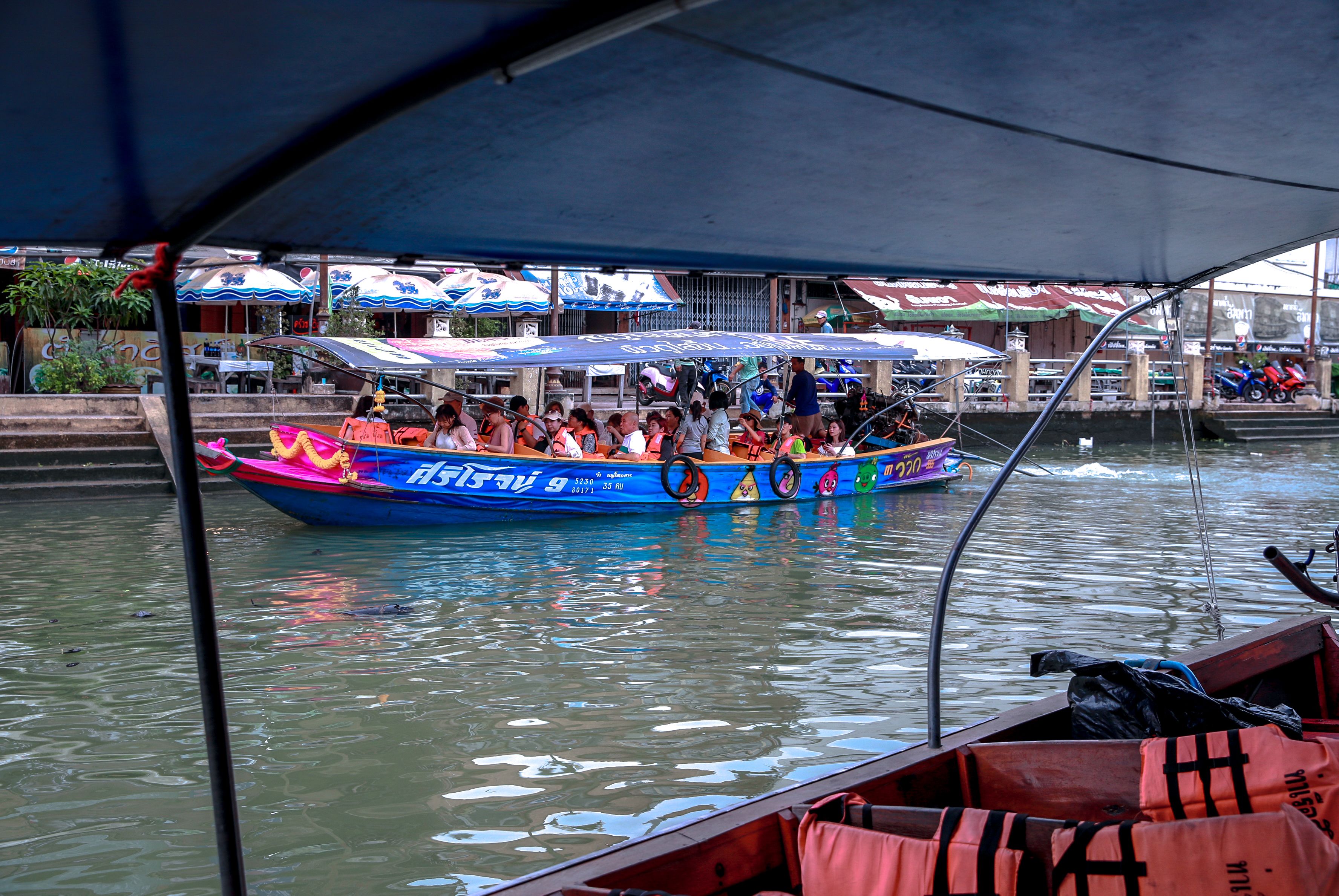 Boats ferry tourists to and from Amphawa Floating Market