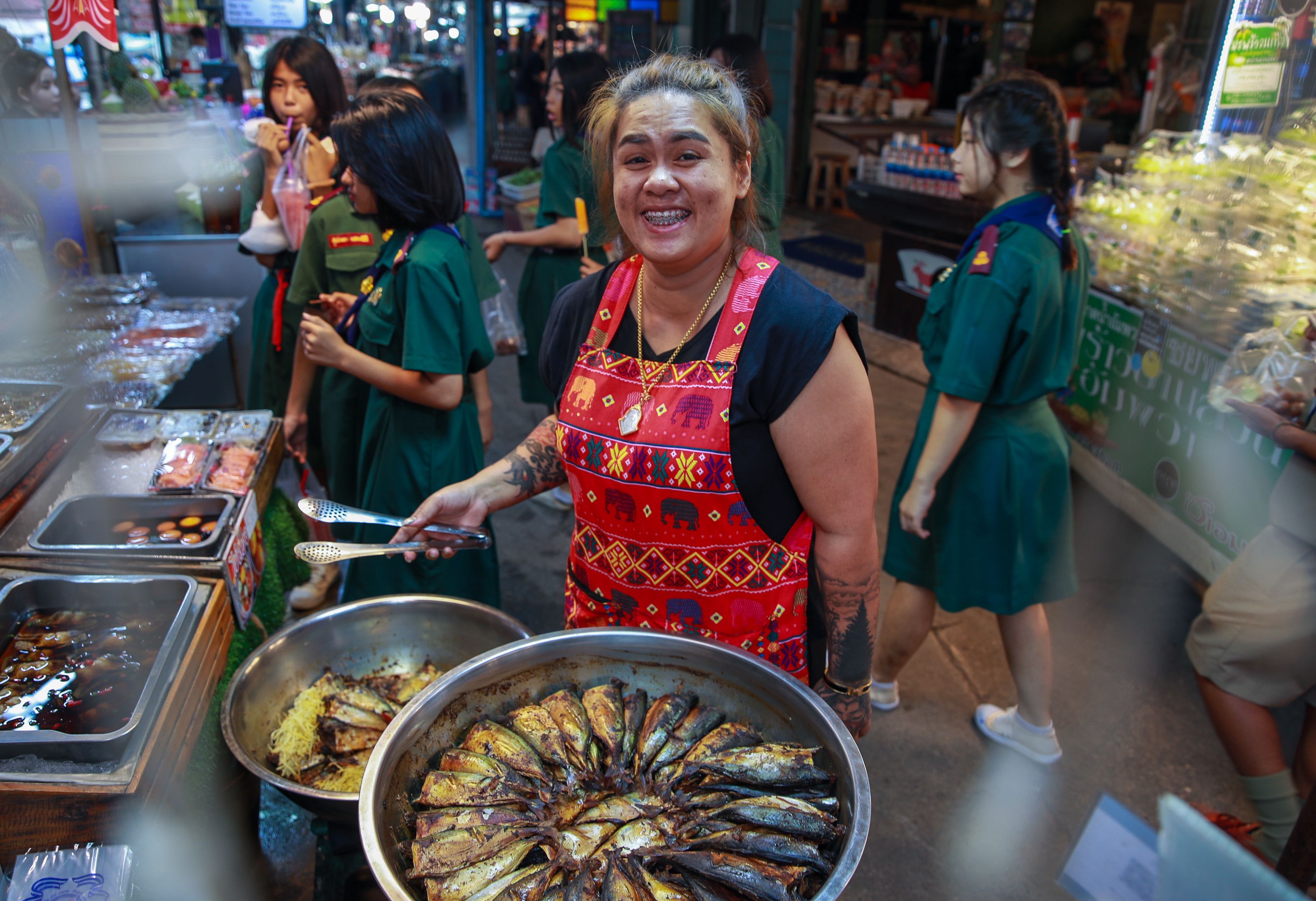 Sasithon works at Amphawa Floating Market, where she helps visitors on and off the boats