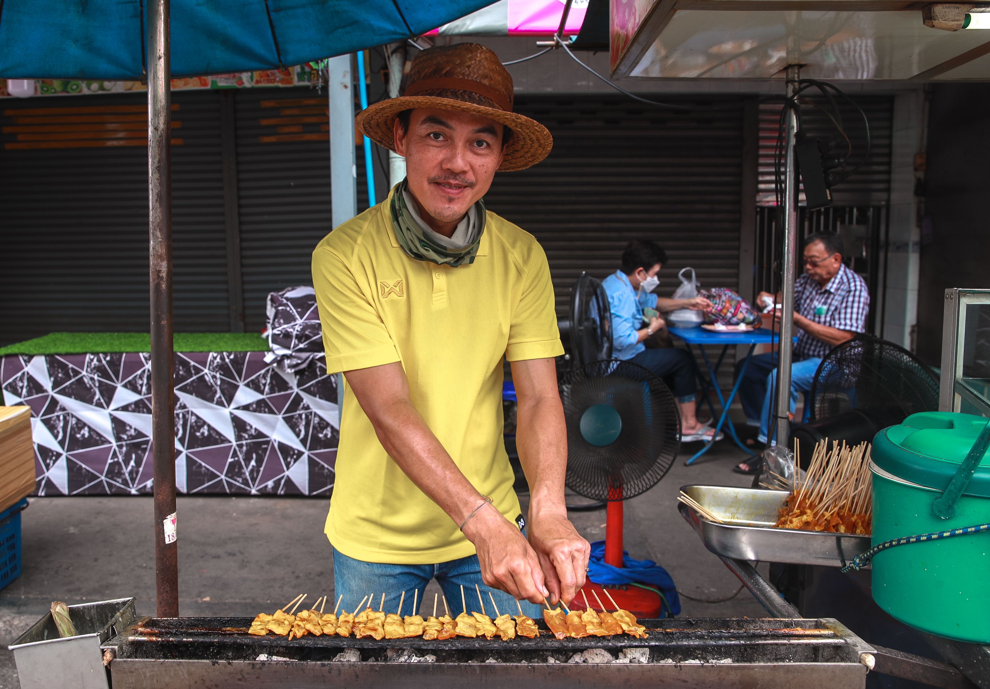 For Aod Benjaporntanaphat, the Mae Klong Railway Market is more than just a place of work—it's a family legacy. Aod, 45, and his wife Par, 42, run the Mae Klong Satay Cart, a business started by Aod's grandfather in the 1970s.