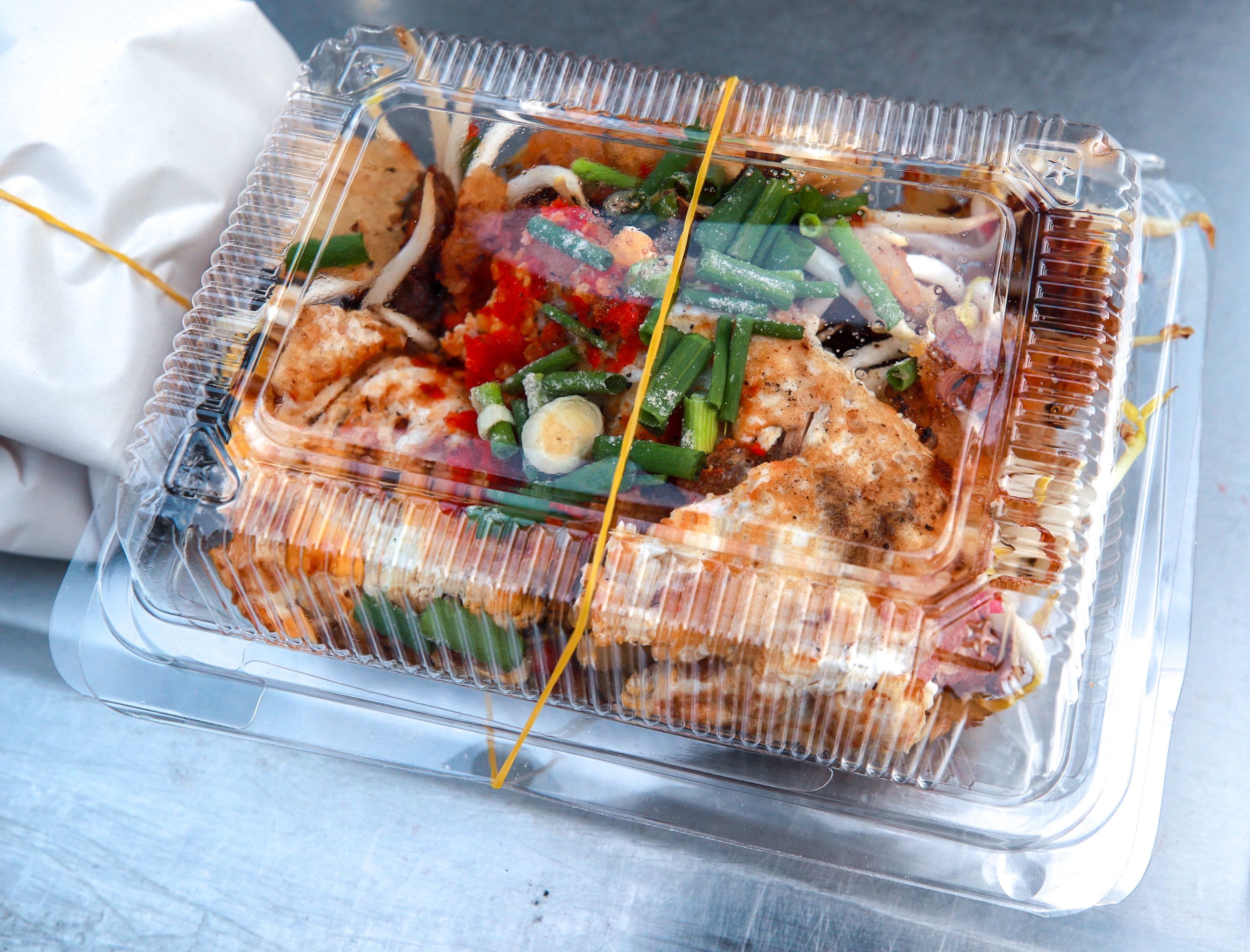 Takeaway pad thai prepared at the Angsuchot family's stall