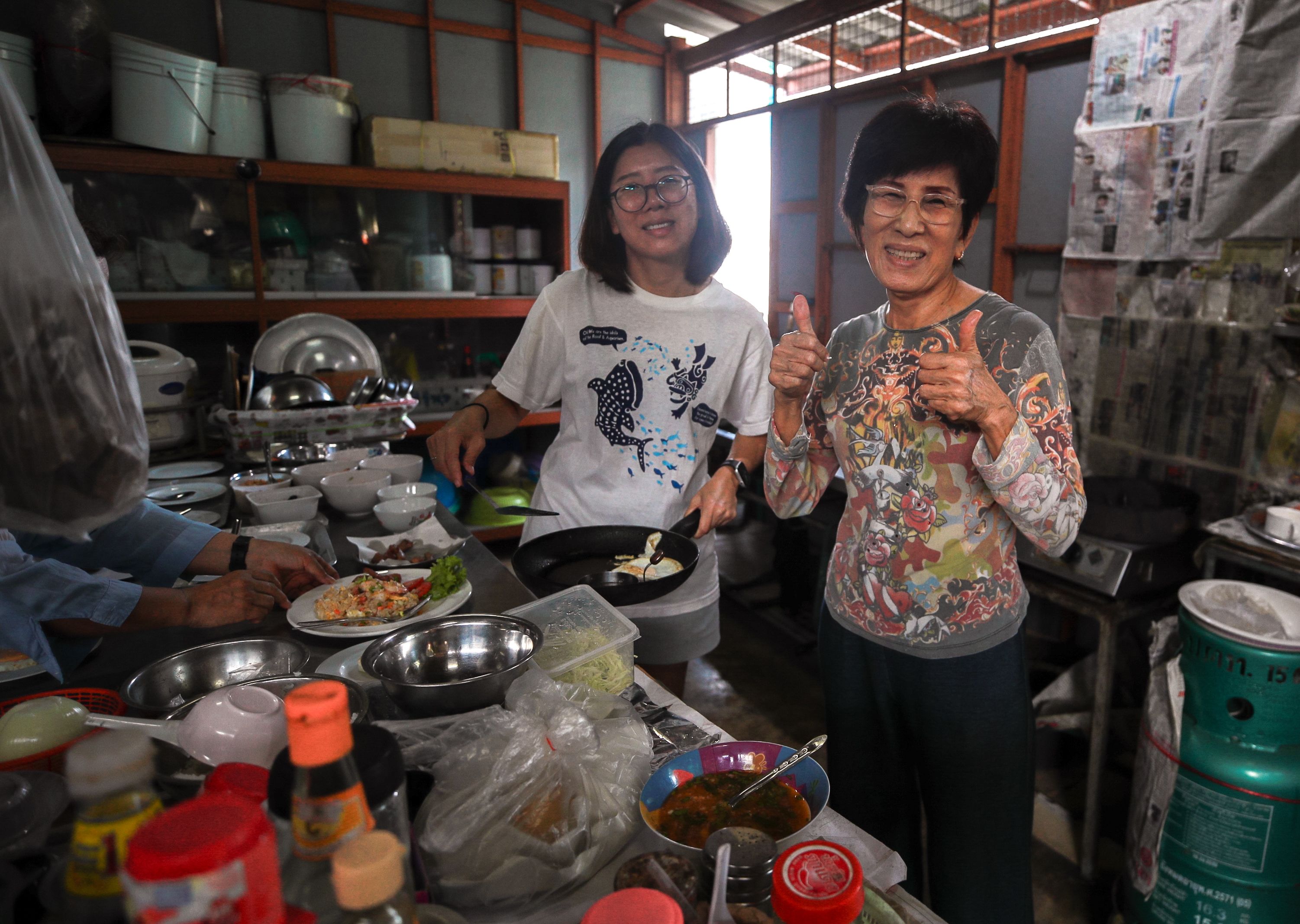 Fern and her mother, Sompis, in the kitchen at Siriporn House