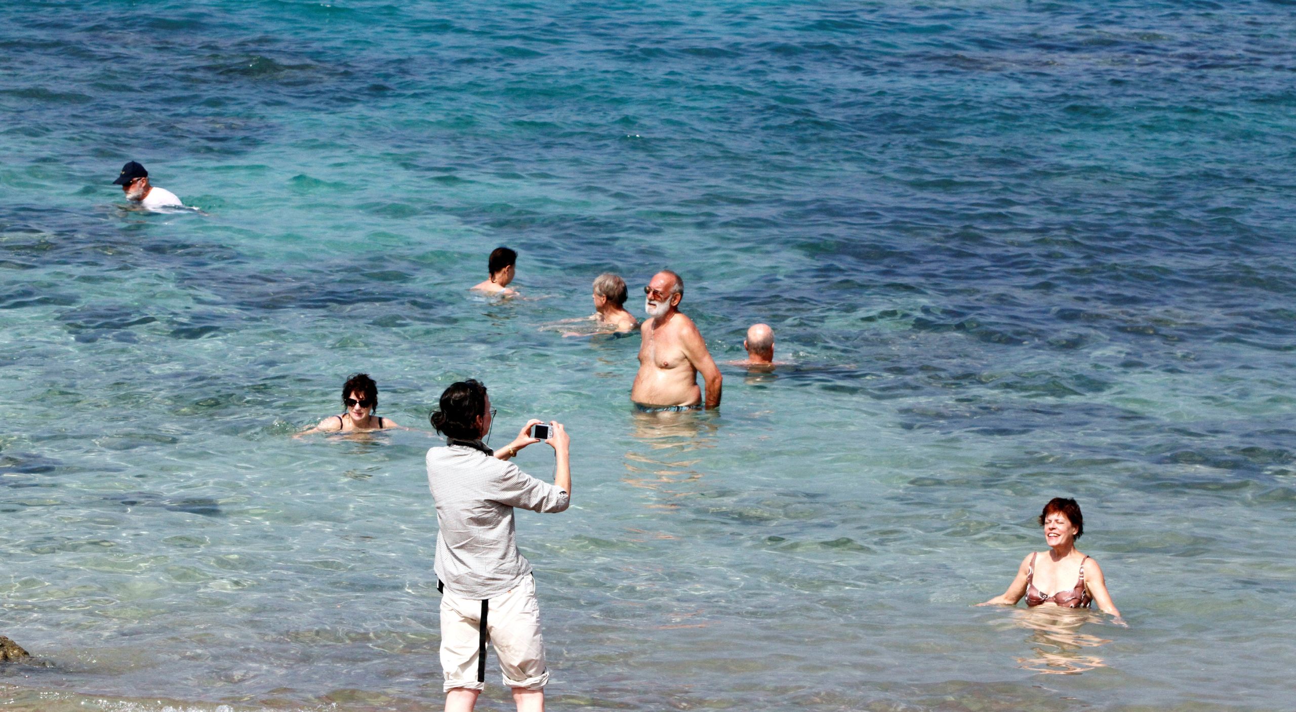 Tourists enjoy the warm waters of the Indian Ocean at Diharmi beach in 2013 (Mohamed Al Sayaghi / Reuters)