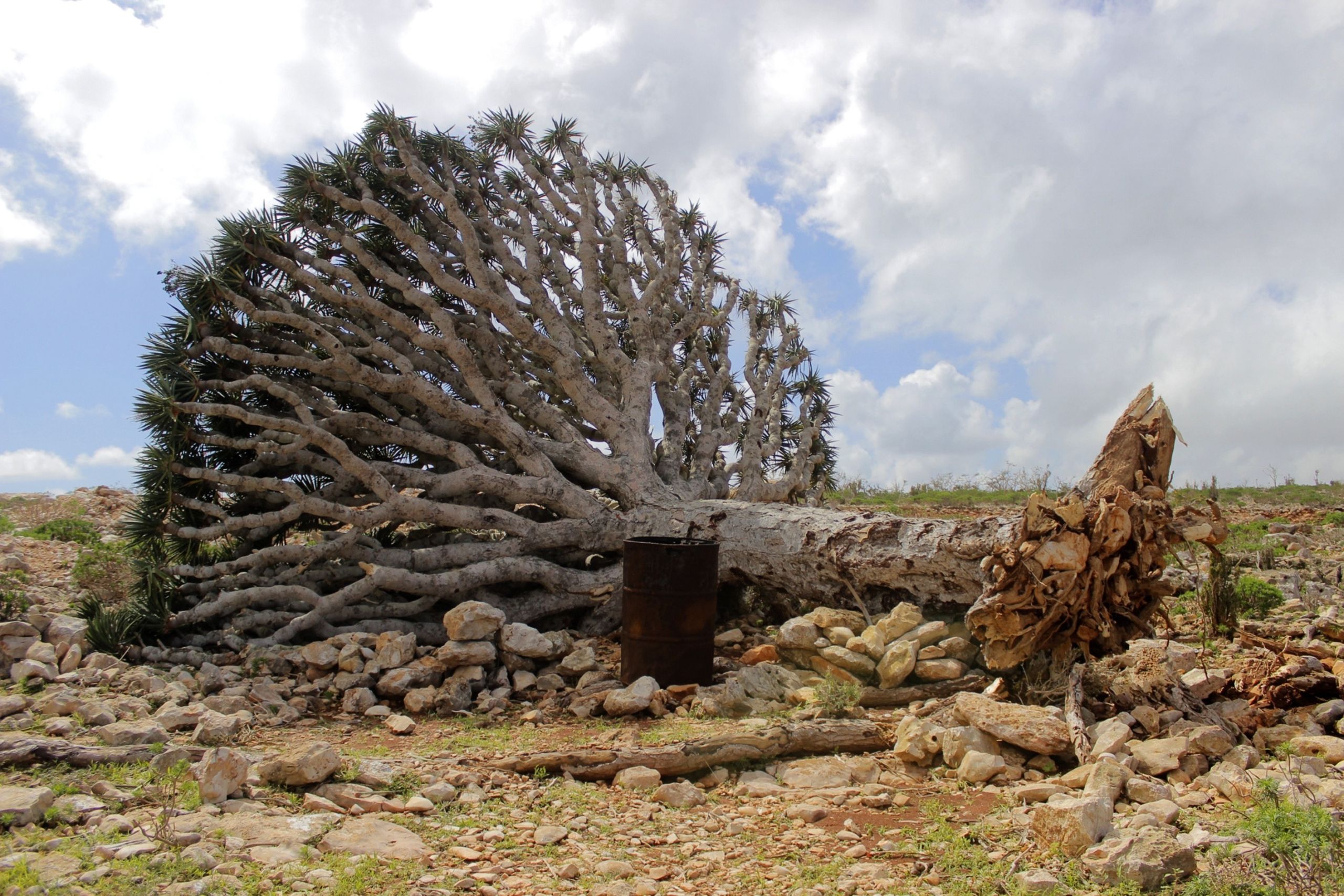 A dragon's blood tree uprooted after Cyclone Megh in 2015 (Mohammed Socotri / Anadolu Agency / Getty Images)