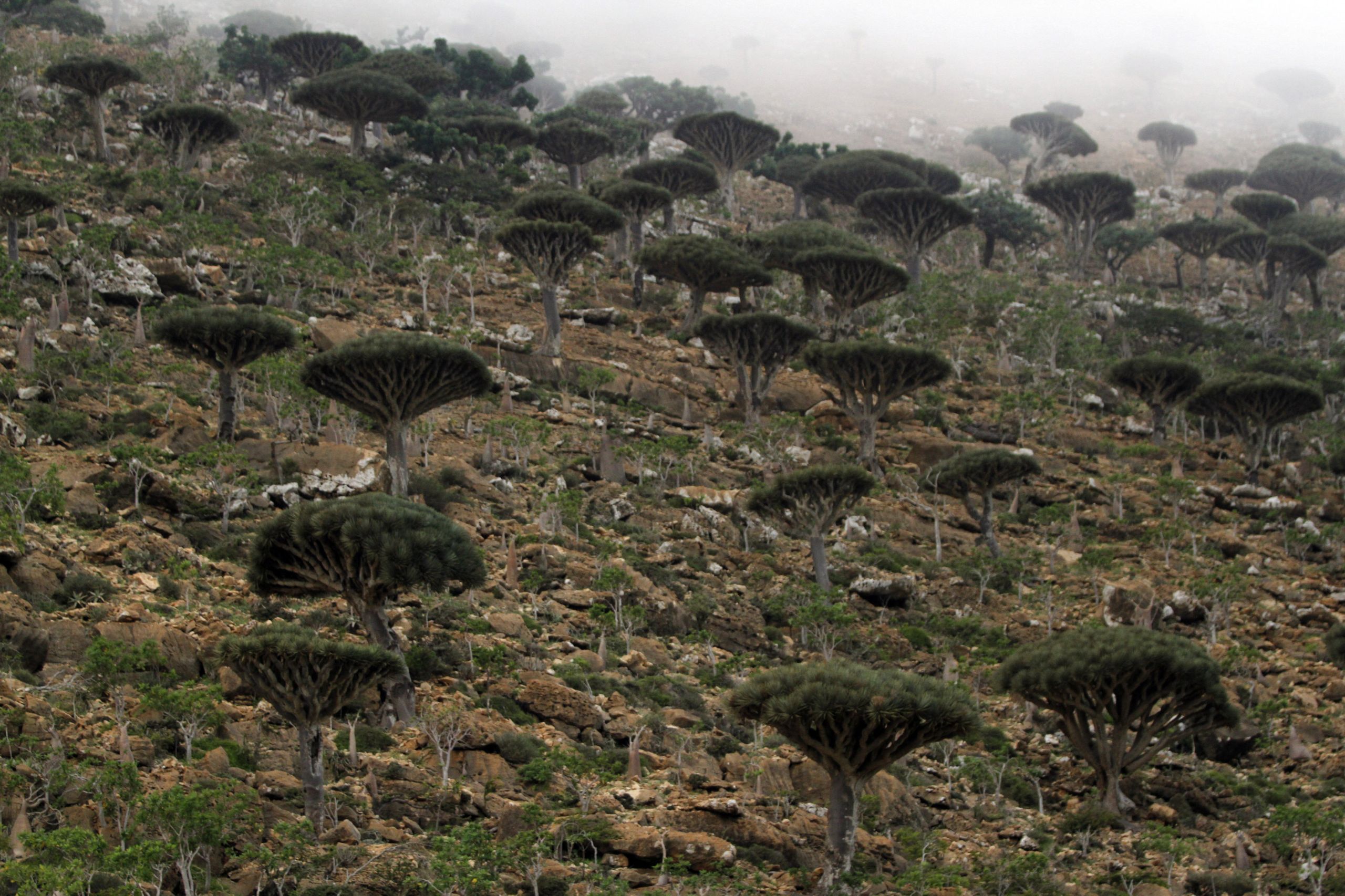 Dragon's blood trees cling onto the Socotran landscape (Mohamed Al Sayaghi / Reuters)