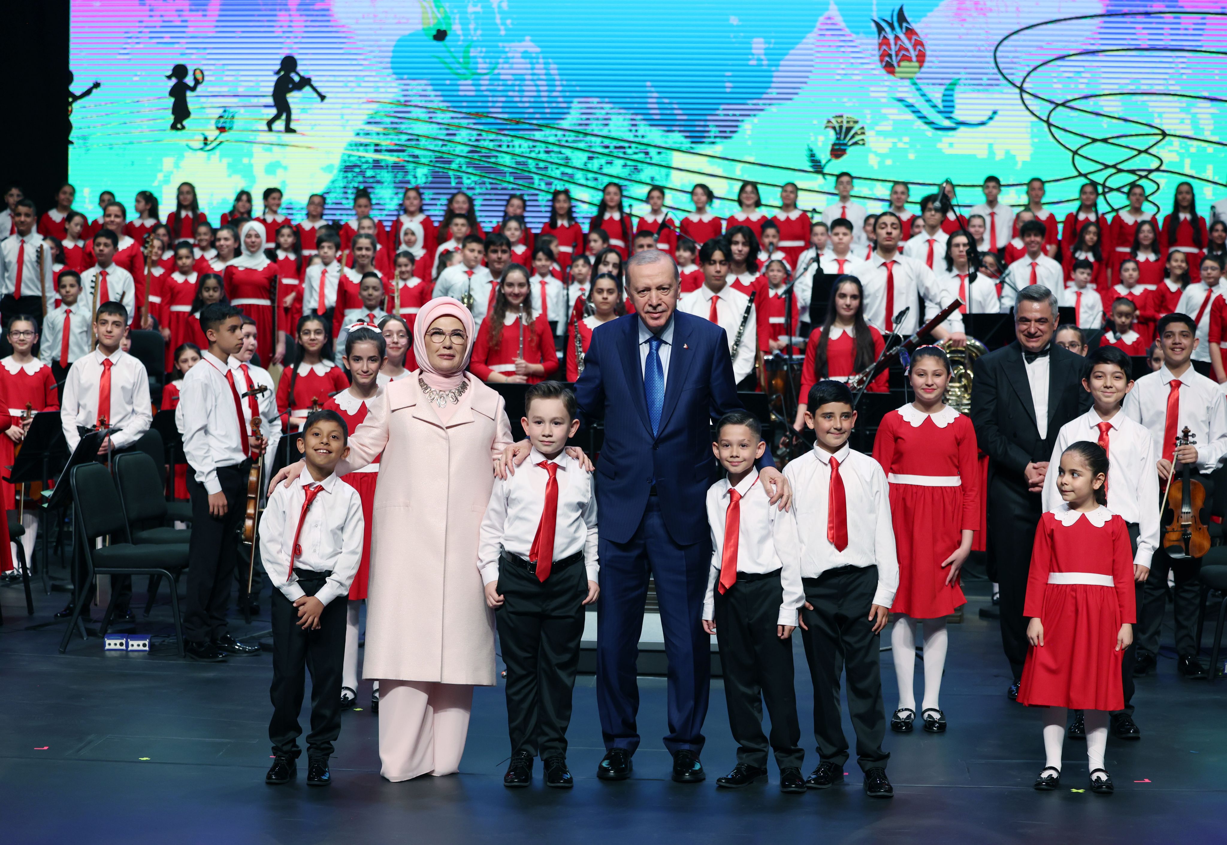 President Recep Tayyip Erdogan and his wife Emine attend a children's day celebration in Ankara in April 2025. Getty Images