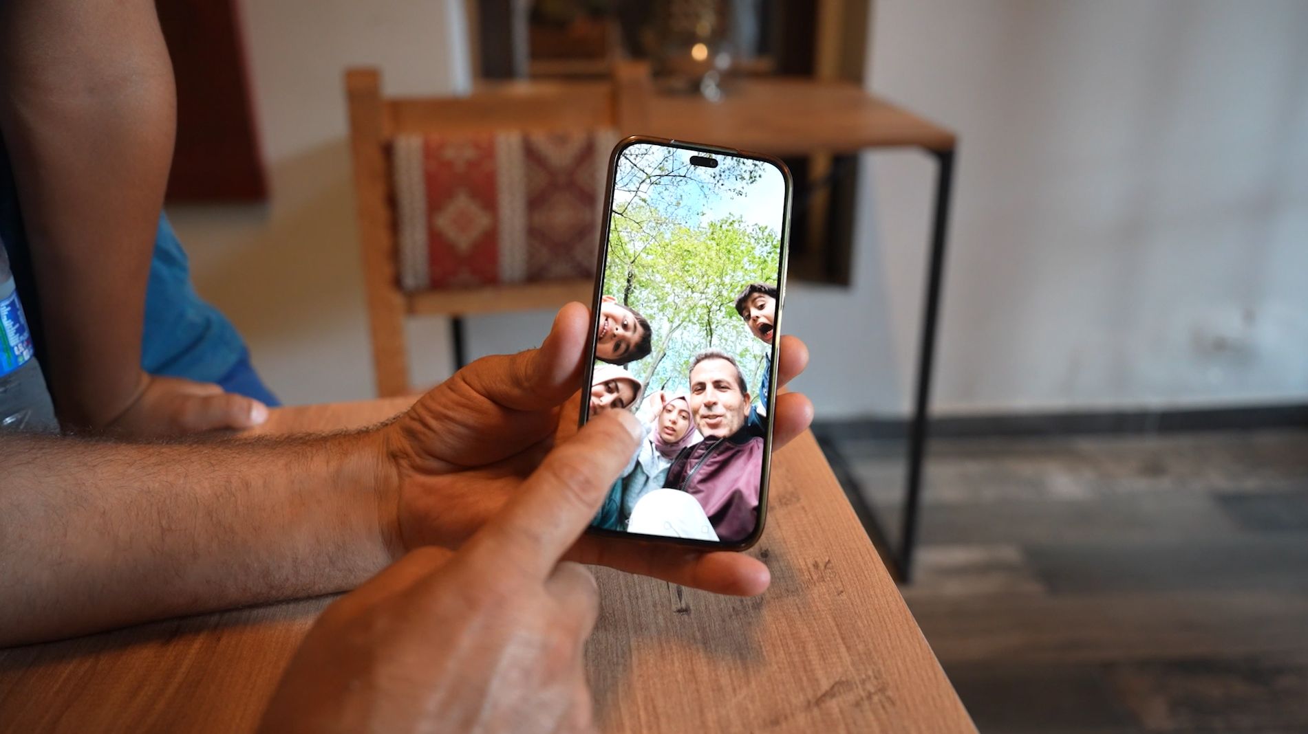 Baris Uzel shows a photo of his family. He says he would like to have more children but cannot afford them. Halil Taskin for The National