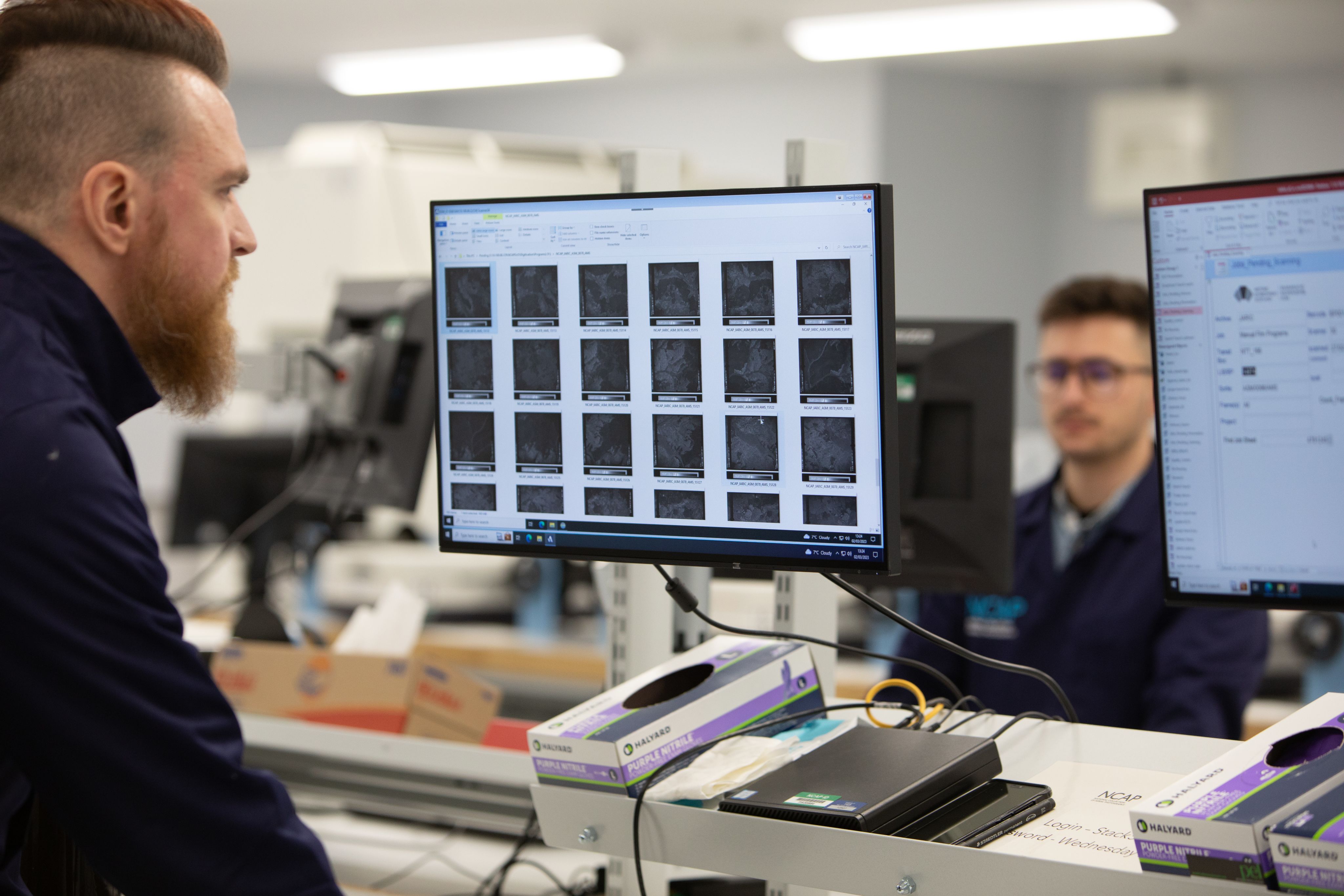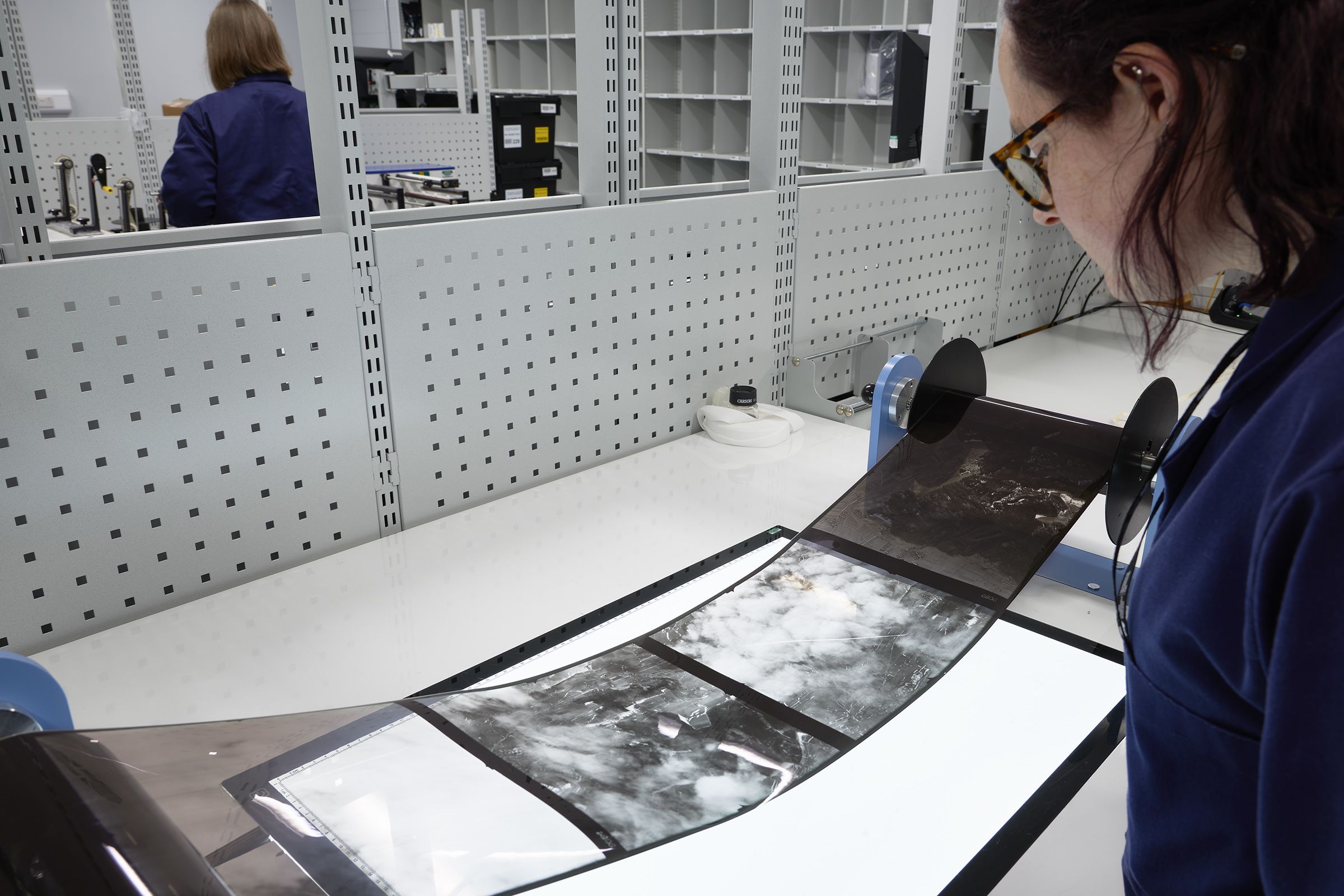 Staff at the National Collection of Aerial Photography digitise the aerial images. Photo: NCAP