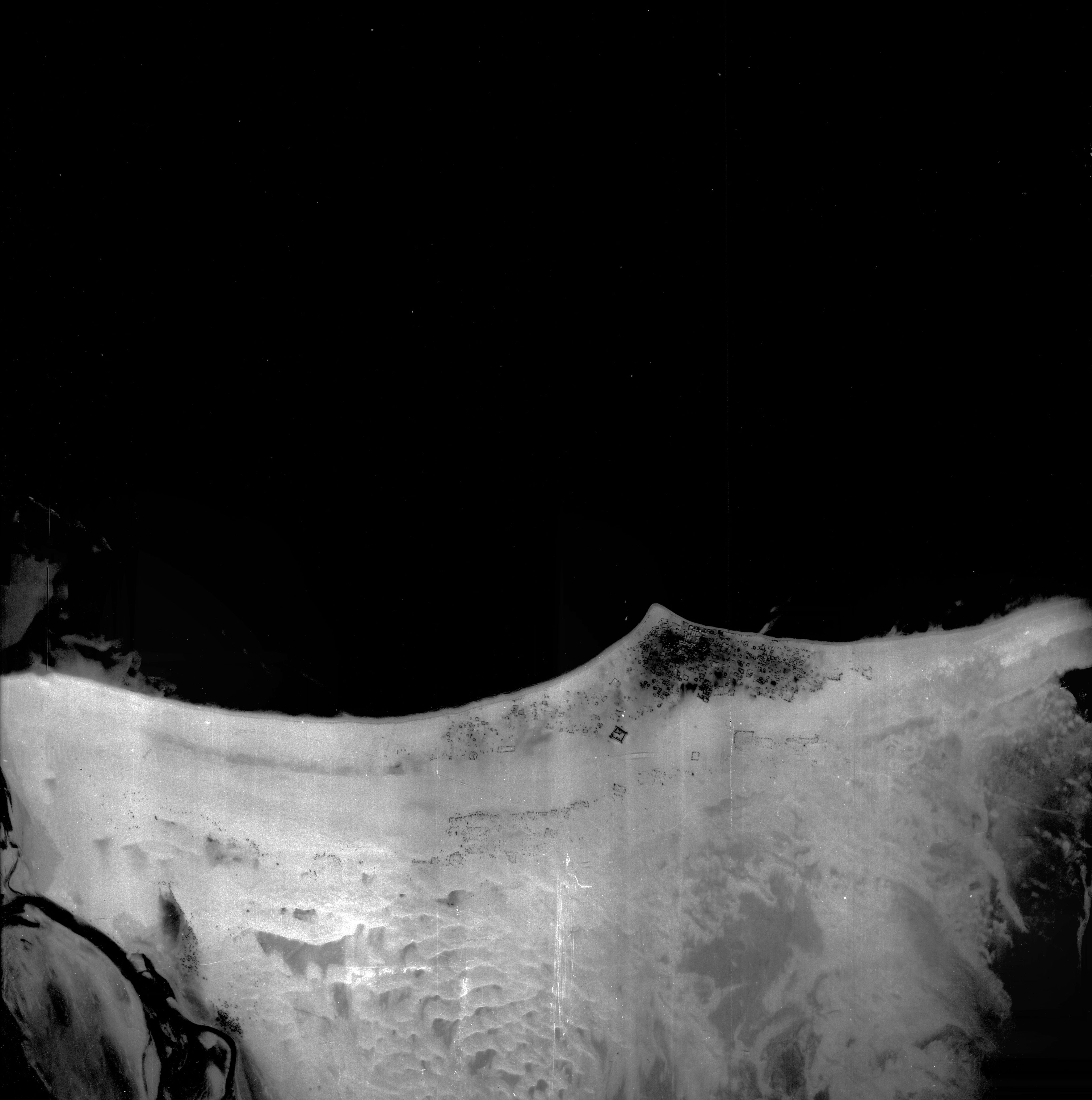 An aerial view of Abu Dhabi from March 29, 1951, showing Abu Dhabi town and Al Bateen village. Photo: NCAP