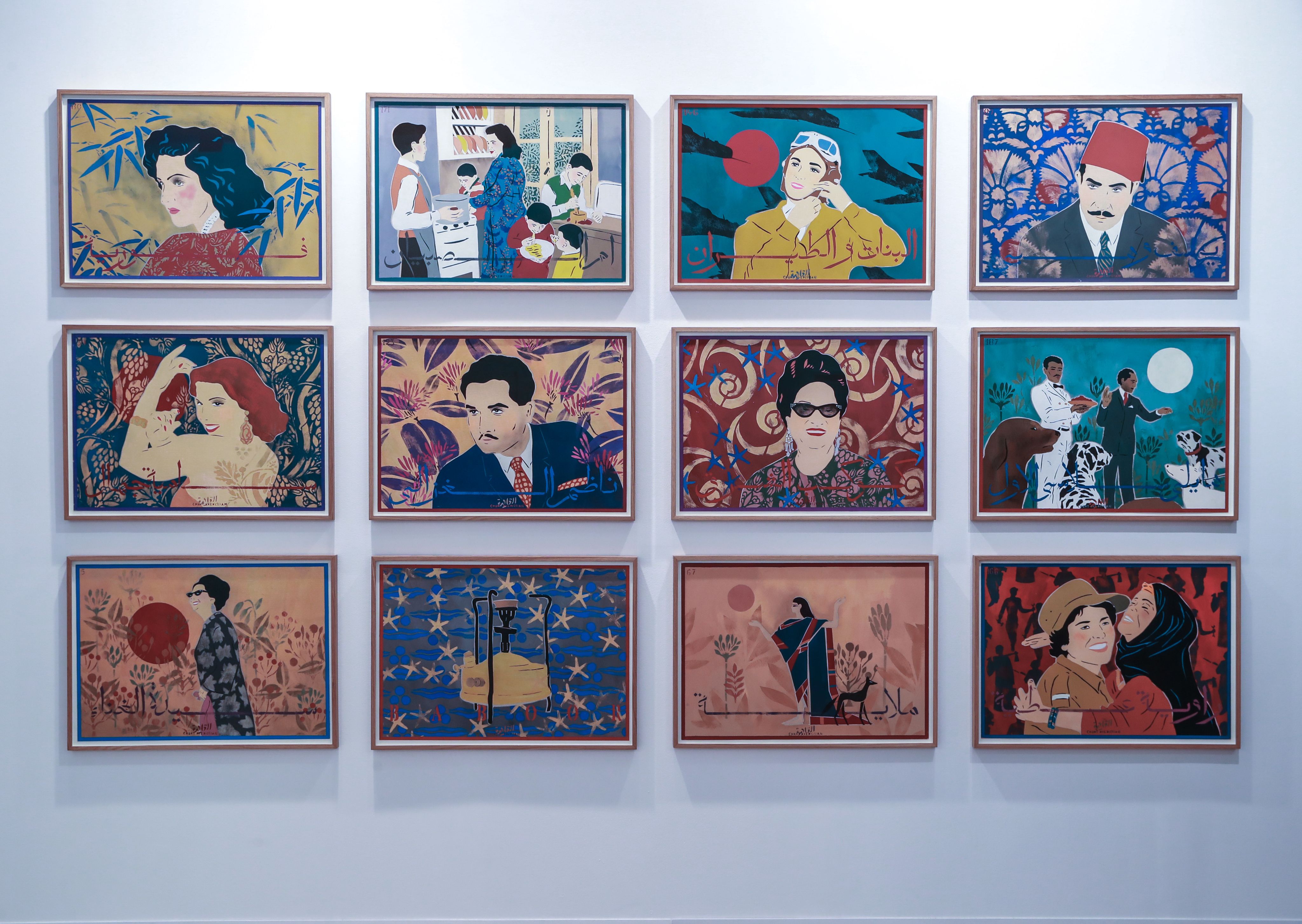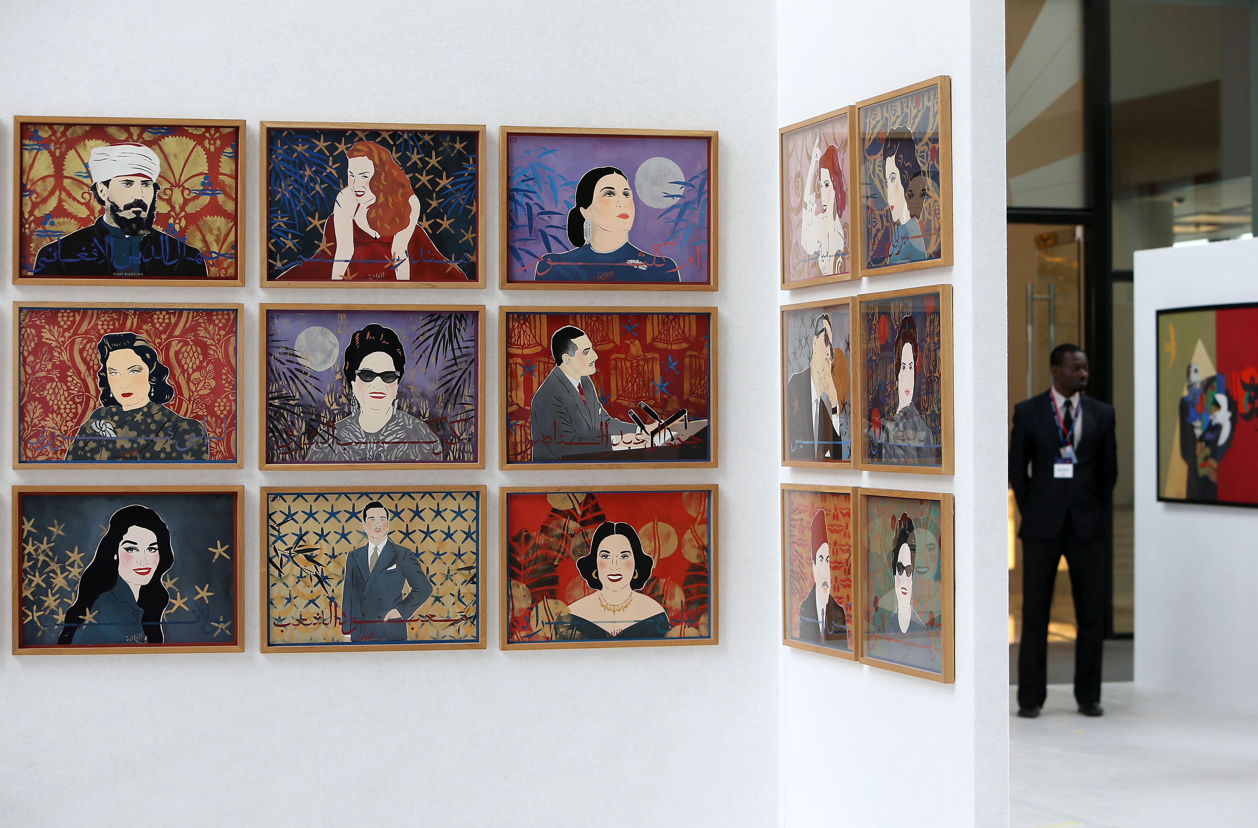 Paintings featuring Umm Kulthum by Chant Avedissian on display at Abu Dhabi Art. Victor Besa / The National