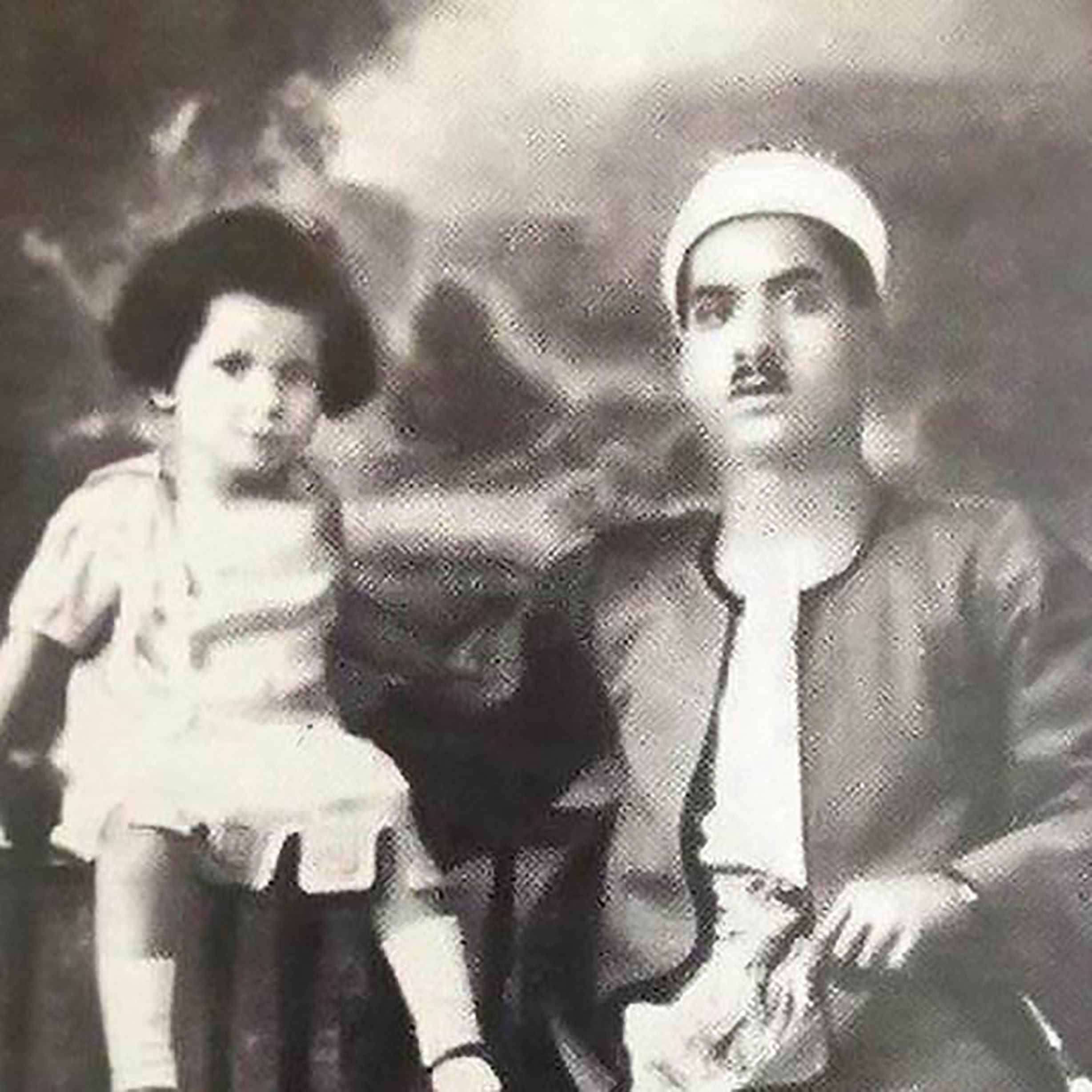 Umm Kulthum as a toddler with her father Ibrahim El Beltagi