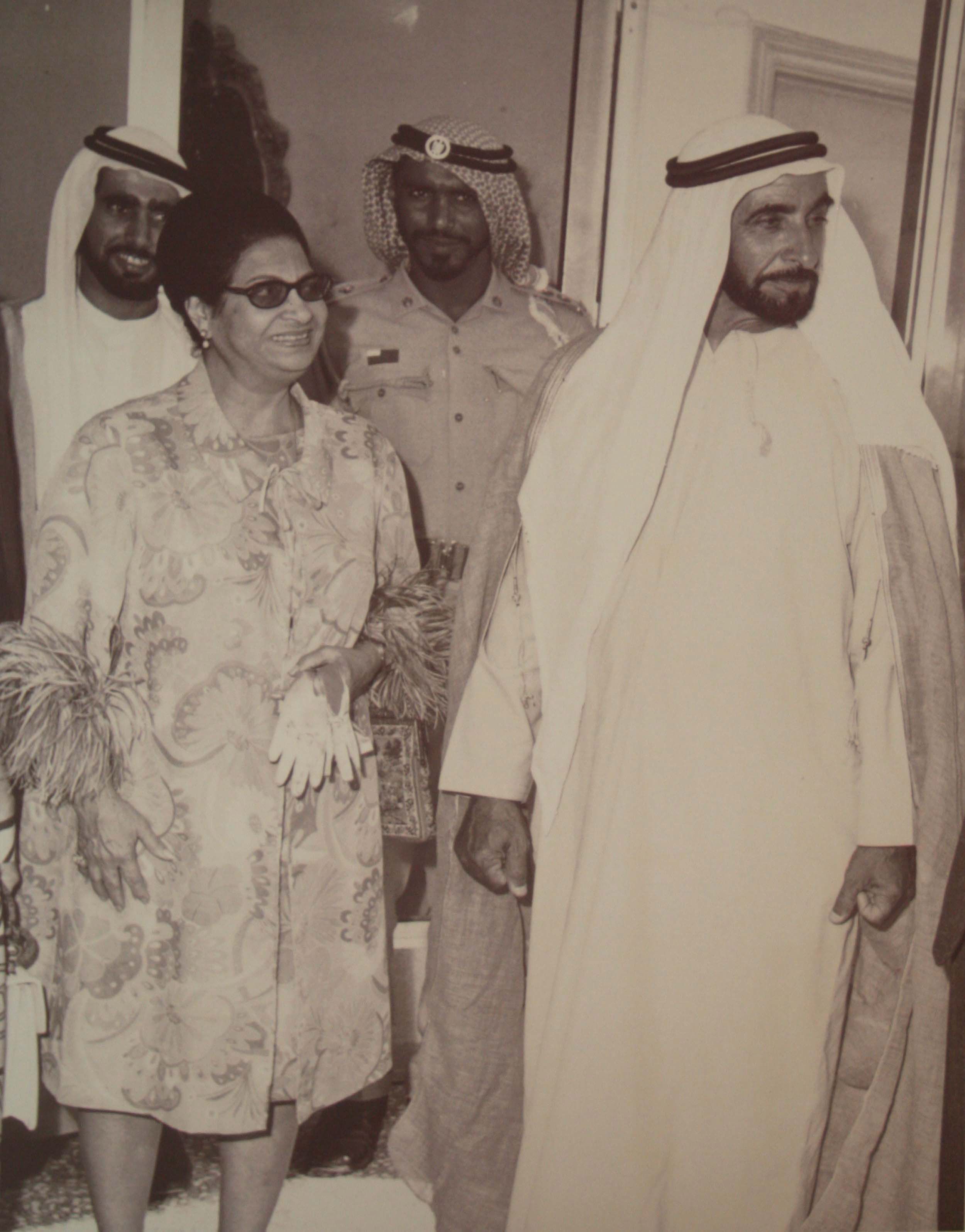 UAE Founding Father, the late Sheikh Zayed bin Sultan Al Nahyan and Umm Kulthum during her visit to Abu Dhabi in December 1971