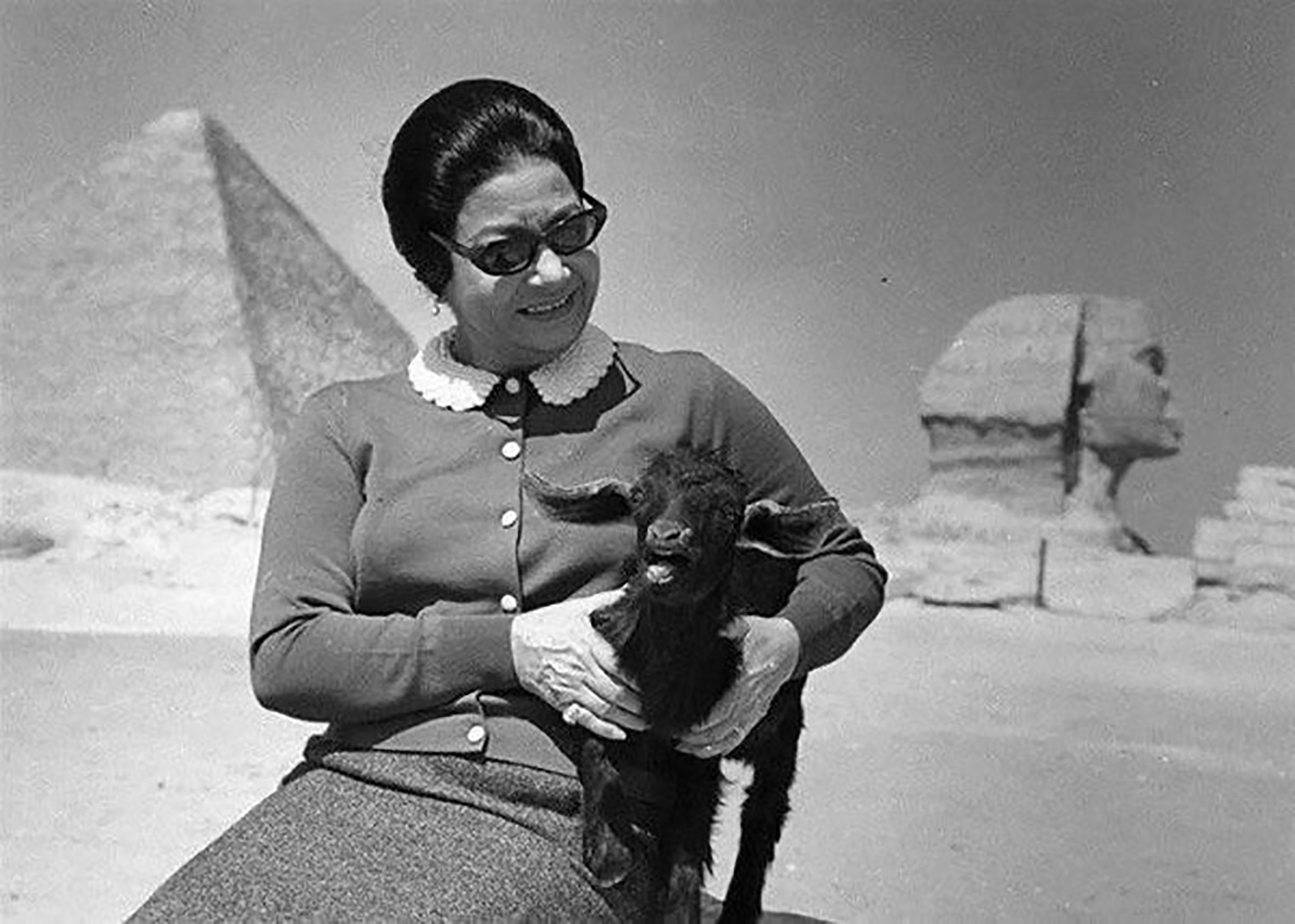 Umm Kulthum at the Sphinx in Cairo. The singer became a symbol of Egyptian nationalism