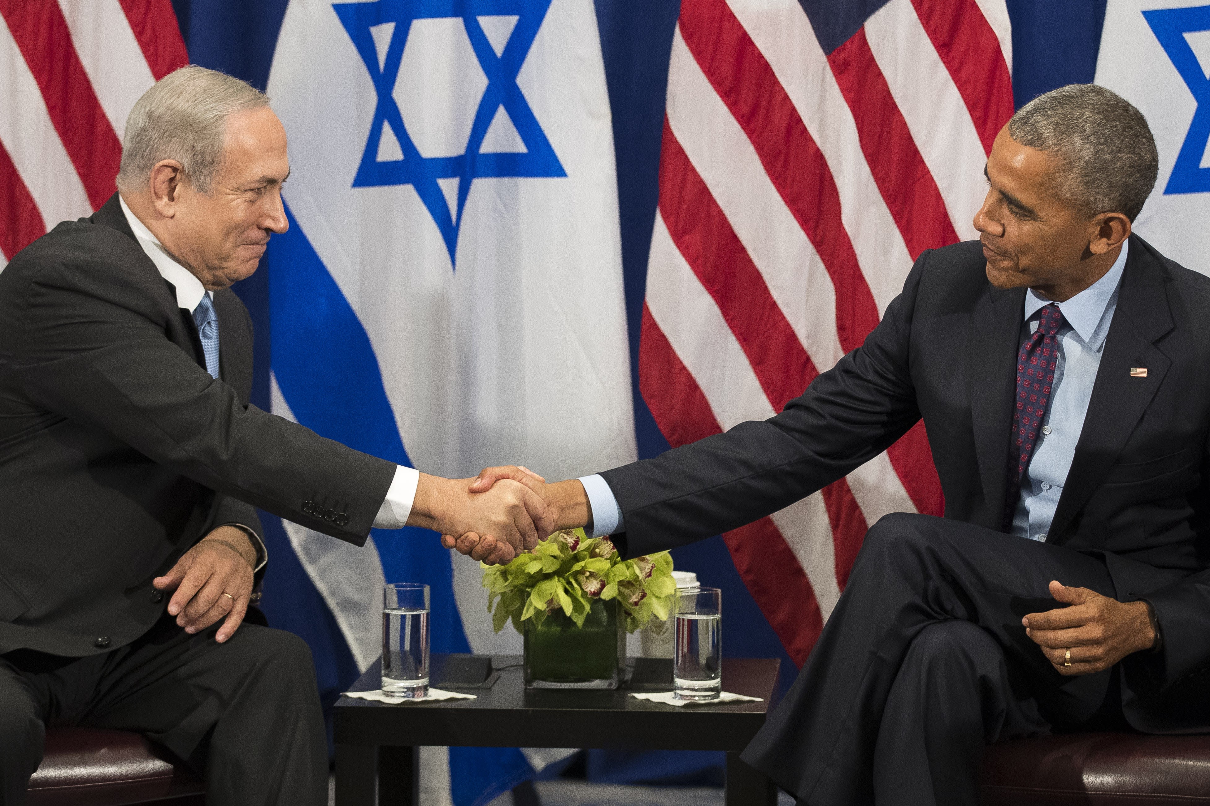 Israeli Prime Minister Benjamin Netanyahu, left, with US president Barack Obama in New York in September 2016, the month the countries agreed to a $38 billion aid package for Israel over 10 years. EPA