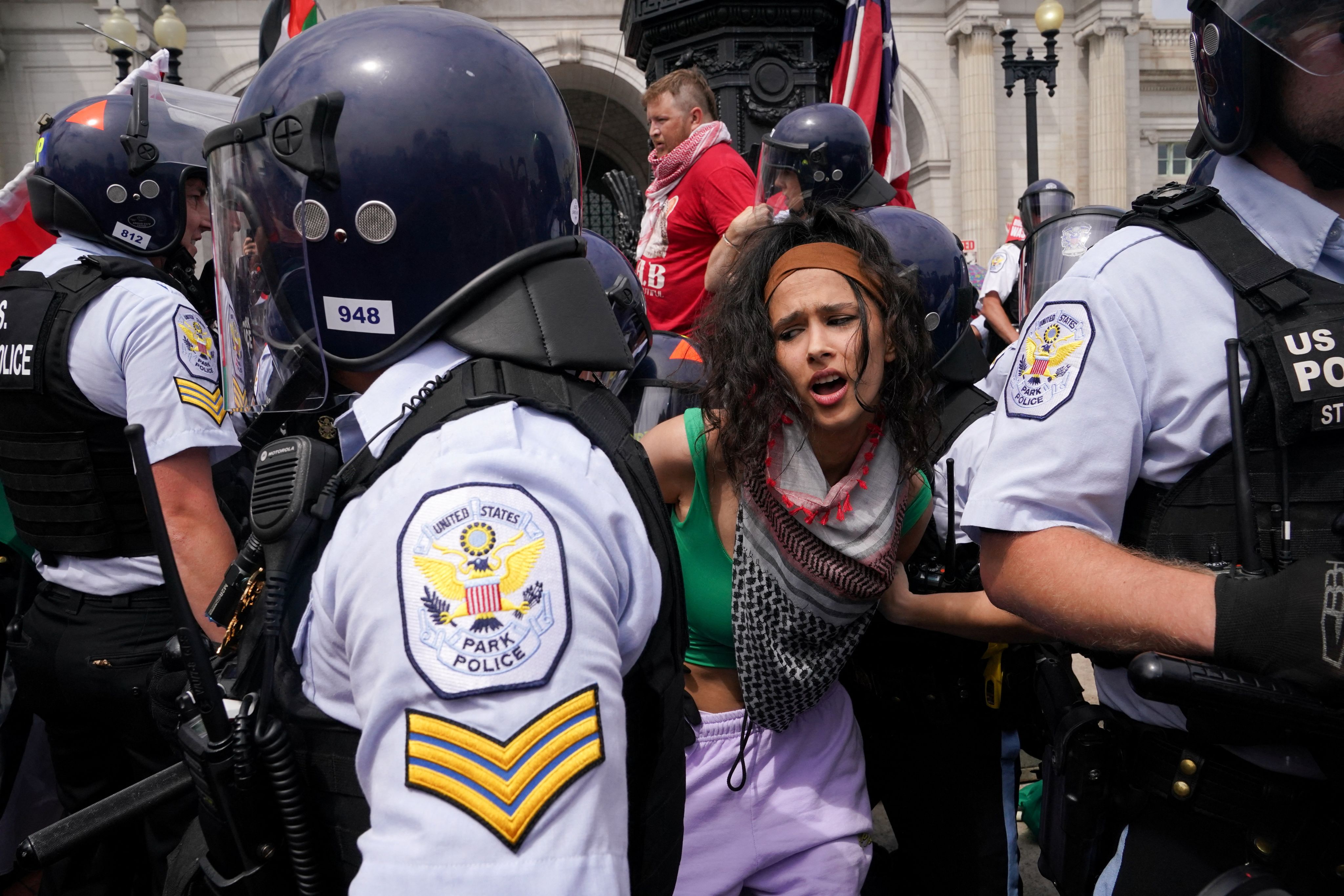 A pro-Palestine demonstrator is arrested near the US Capitol, where Benjamin Netanyahu was giving a speech to Congress. Reuters