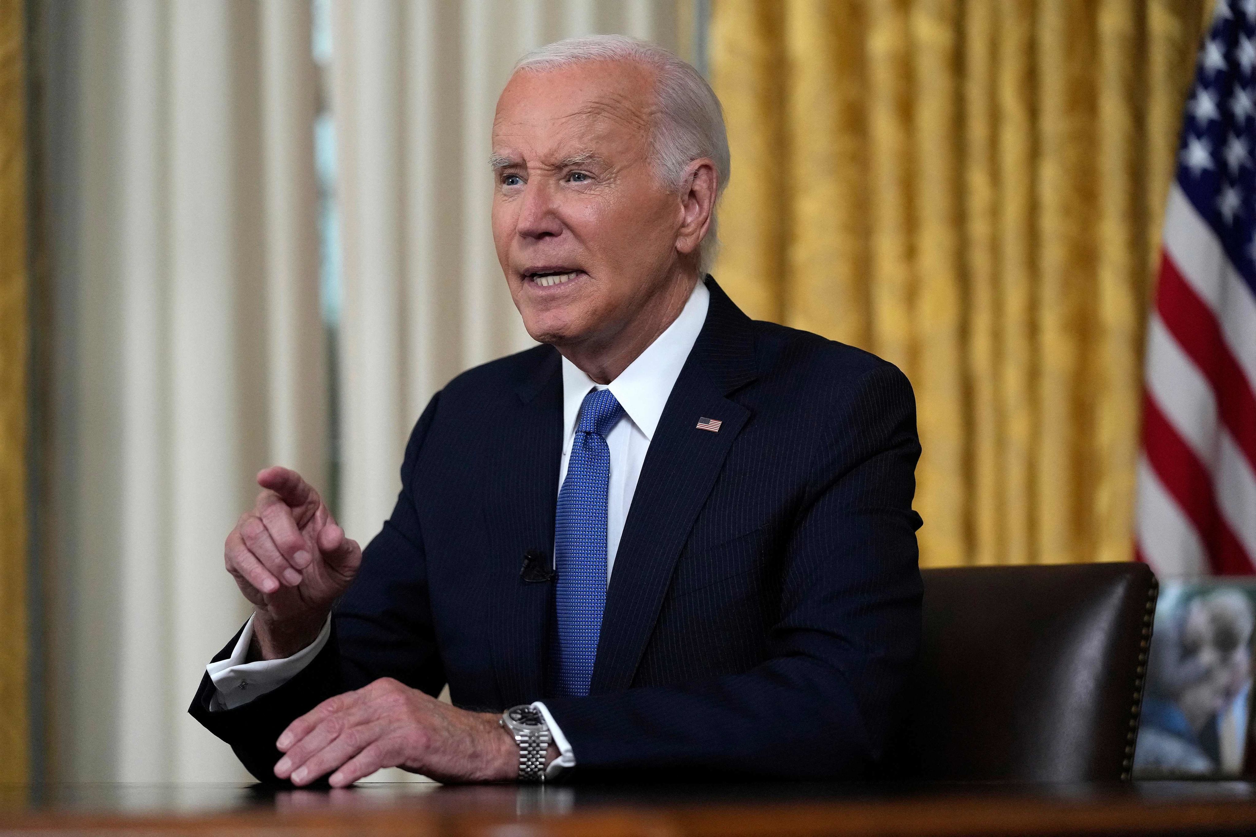 US President Joe Biden addresses the nation after withdrawing from the election. AFP