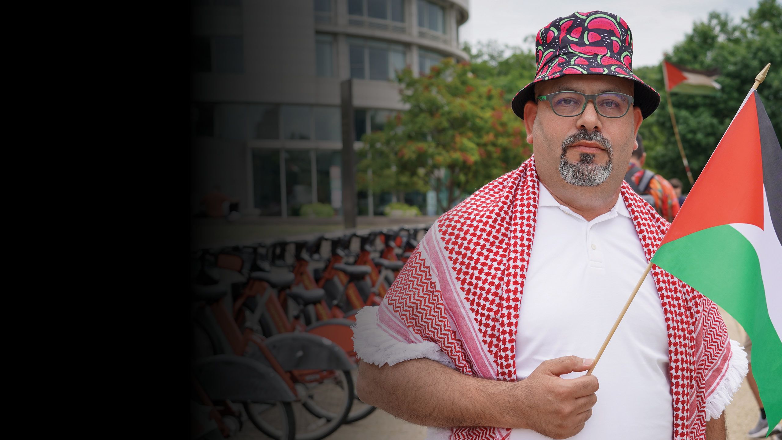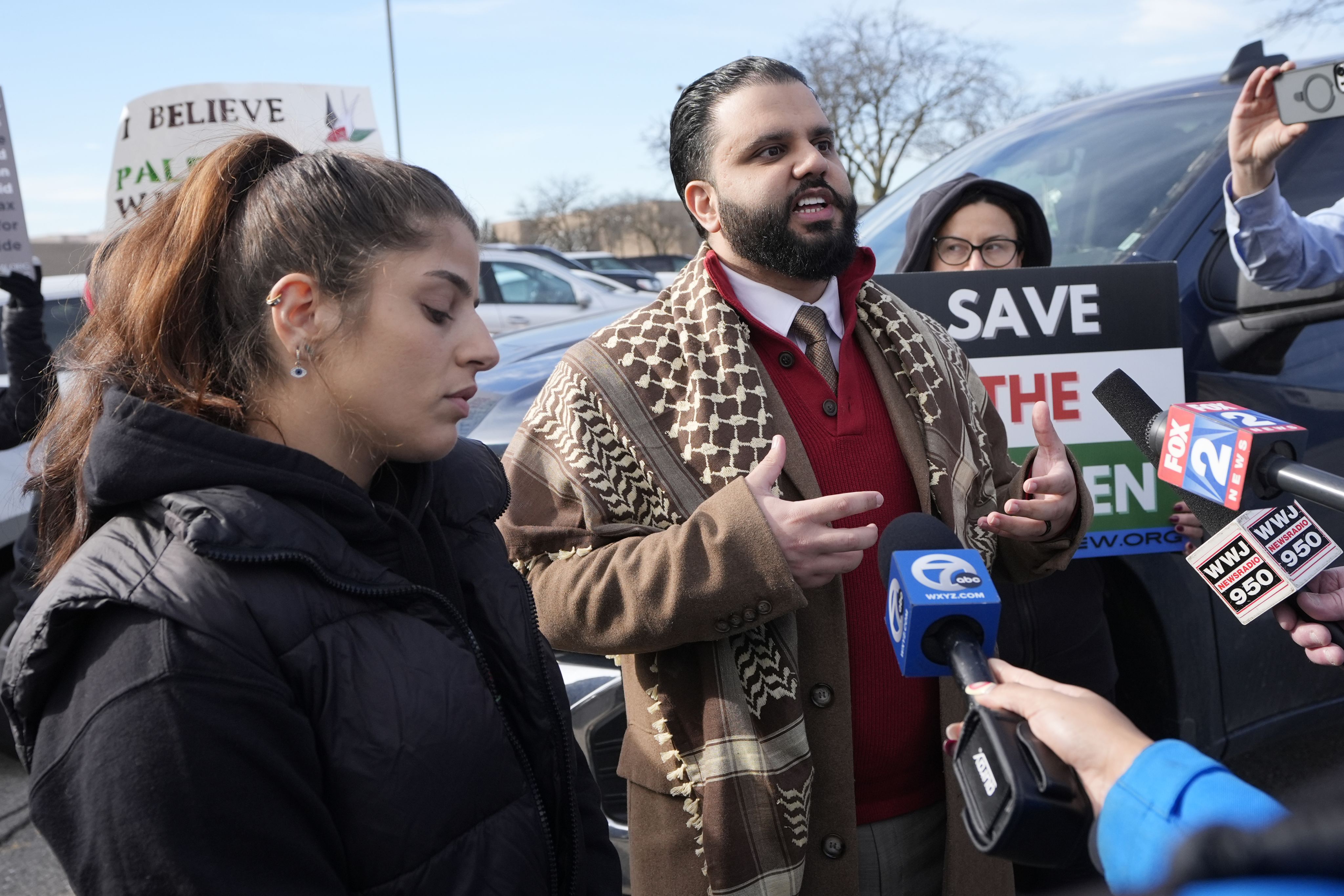 Imran Salha at a protest against the Gaza war, in Dearborn, Michigan. AP