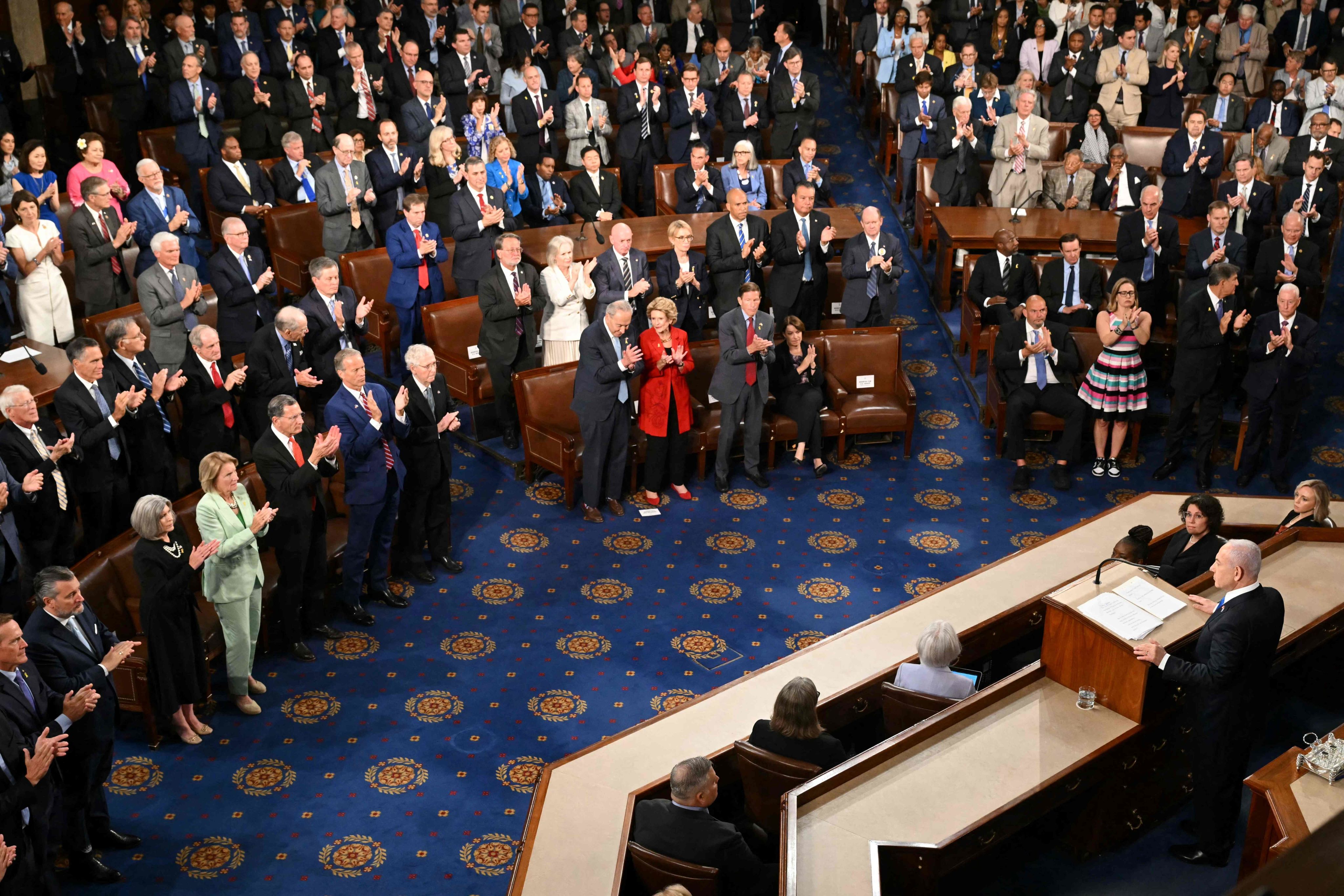 Benjamin Netanyahu receives a standing ovation after addressing a joint session of Congress. AP