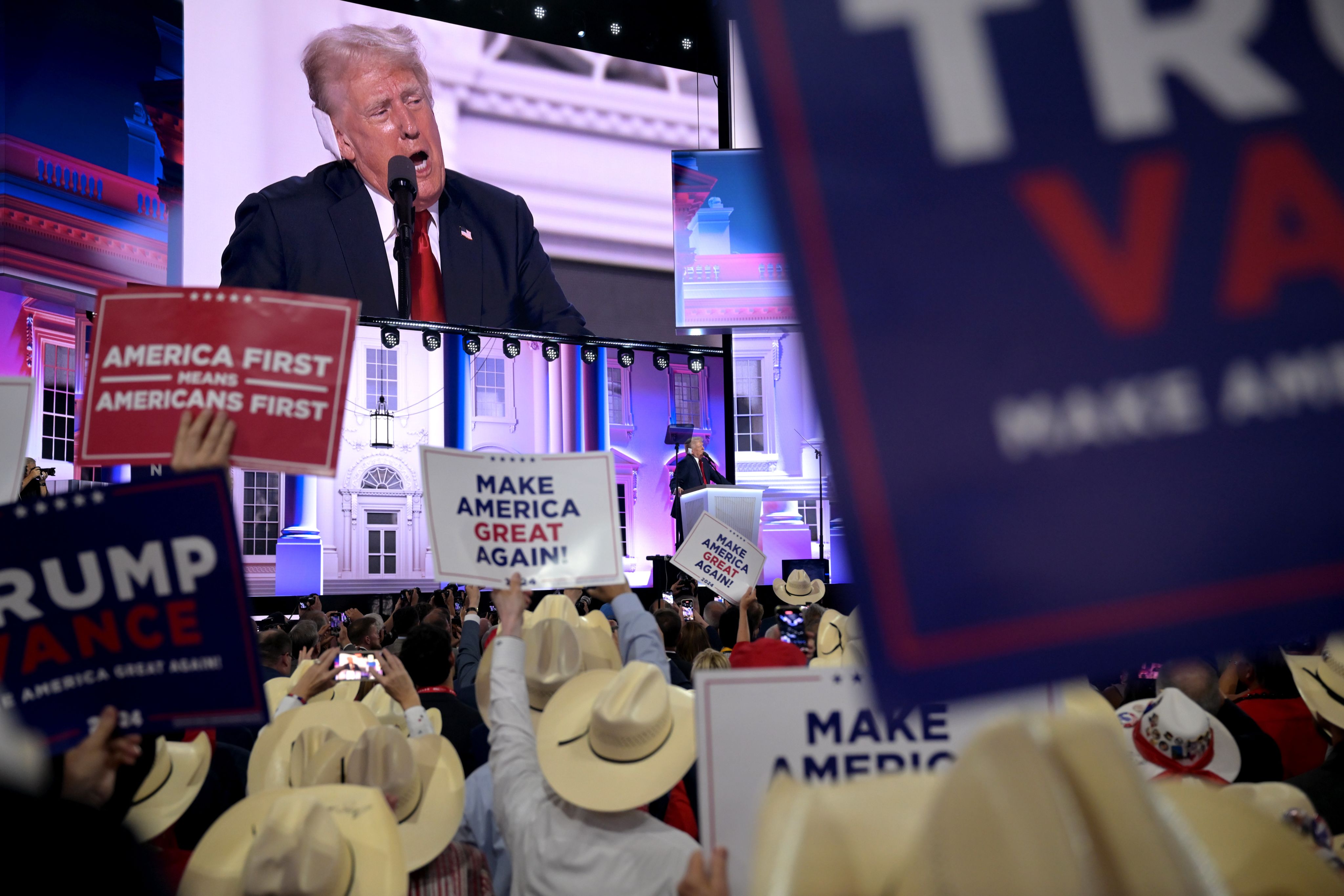 Donald Trump gives a speech at the Republican National Convention in Wisconsin. Bloomberg