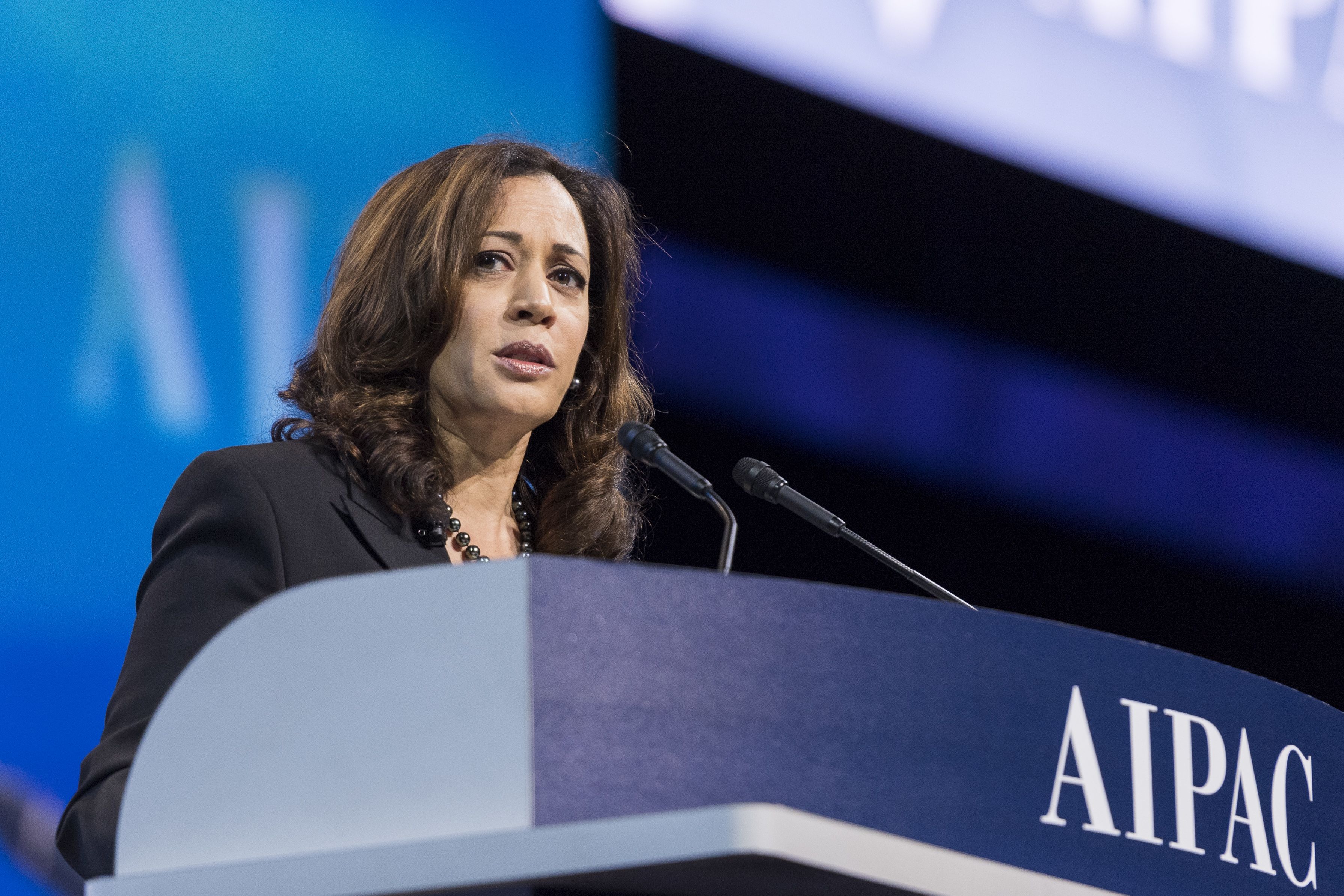 Kamala Harris speaks at an American Israel Public Affairs Committee event in 2017. Photo: Sipa USA
