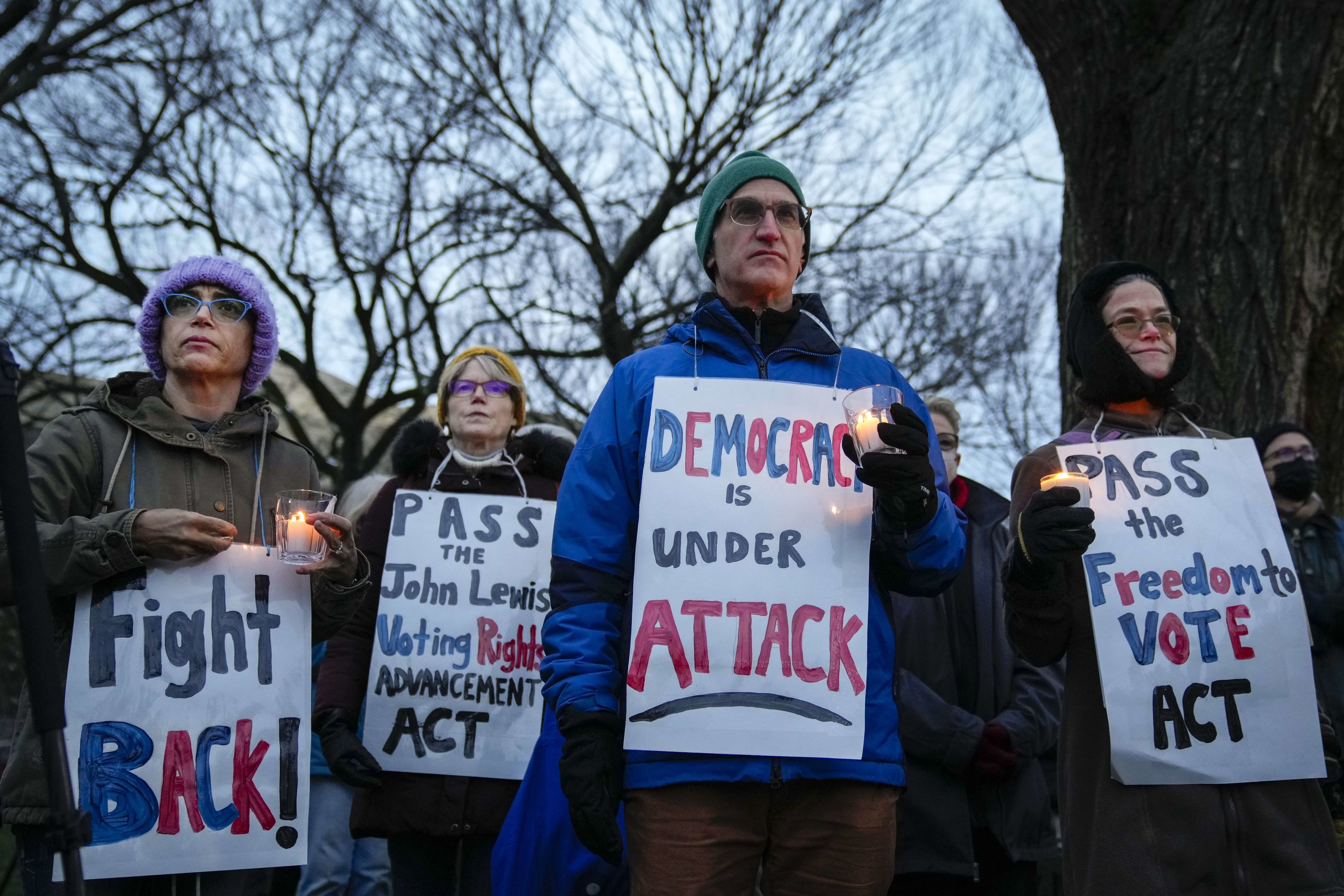 Activists attend a vigil near the US Capitol in 2022, a year after Trump supporters attacked the building. AFP